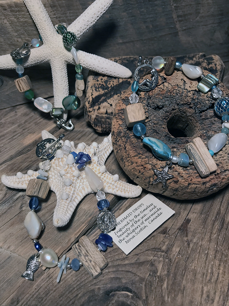 Sue also enjoys designing her signature Mermaid Drops jewellery, earrings and bracelets inspired by the beauty of the sea and the whispers of mermaids. Most recently she has developed Fernwood Fairy Doors. A collection of tiny doors, perfect for attracting the Fairies – inside and out.